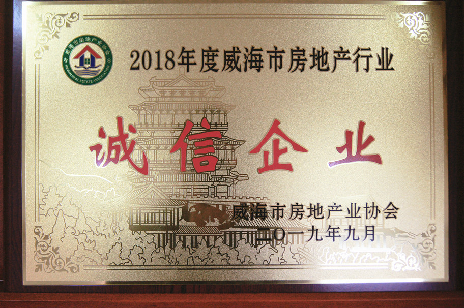 獲獎(jiǎng)名稱:2018年度威海市房地產(chǎn)行業(yè)誠信企業(yè) 獲獎(jiǎng)單位:威海市房地產(chǎn)協(xié)會(huì) 頒發(fā)單位:威海市房地產(chǎn)業(yè)協(xié)會(huì)