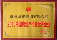 成果名稱:2018中國房地產(chǎn)行業(yè)優(yōu)秀企業(yè),獲獎(jiǎng)單位:威海城建集團(tuán)有限公司,頒發(fā)單位:中國房地產(chǎn)行業(yè)管理協(xié)會(huì)