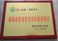 成果名稱:威海市優(yōu)秀住宅小區(qū)培育項(xiàng)目 獲獎(jiǎng)單位:城建·新苑陽光 頒發(fā)單位:威海市房地產(chǎn)業(yè)協(xié)會(huì)