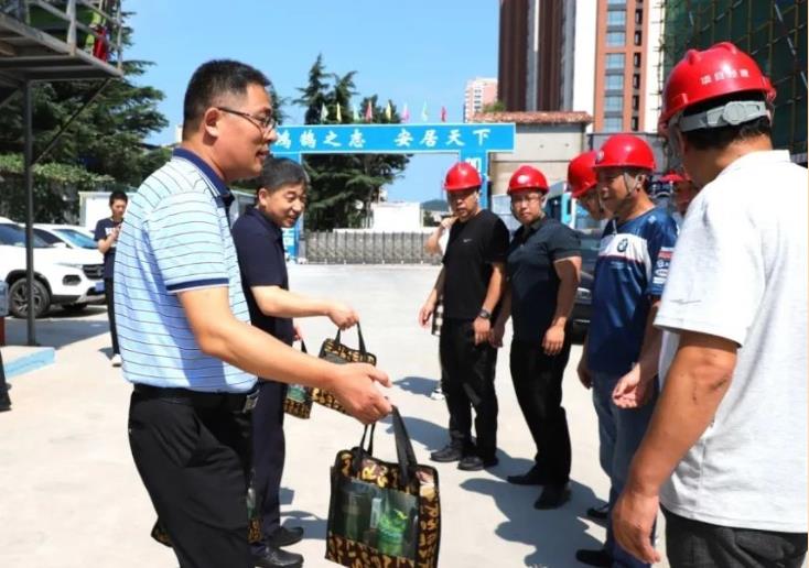 8月4日,市總工會(huì)職工服務(wù)中心主任鄭春剛一行在城建集團(tuán)黨委副書記、總經(jīng)理孫利劍和工會(huì)主席闞吉軍的陪同下,到集團(tuán)新苑陽光項(xiàng)目部為冒高溫、戰(zhàn)酷暑的一線職工送清涼,表達(dá)關(guān)懷與慰問。