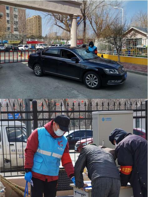 “你好,請配合量一下體溫,用手機微信或支付寶掃一下二維碼進行登記?!痹谒{天小區(qū)和世紀(jì)家園小區(qū)路口檢查站里,各有一支城建黨員志愿服務(wù)隊正積極踐行雷鋒精神,全心全力投入到社區(qū)防疫工作中。他們與怡海園社區(qū)工作人員聯(lián)合防控,對外來車輛和流動人員進行登記及體溫檢測,做好疫情監(jiān)測、排查、預(yù)警、防控、登記等工作。最大限度減少人員流動,外來走親訪友人員一律勸退,努力把疫情風(fēng)險降到最低,守好社區(qū)第一道防線,守住人民群眾健康安全防線。