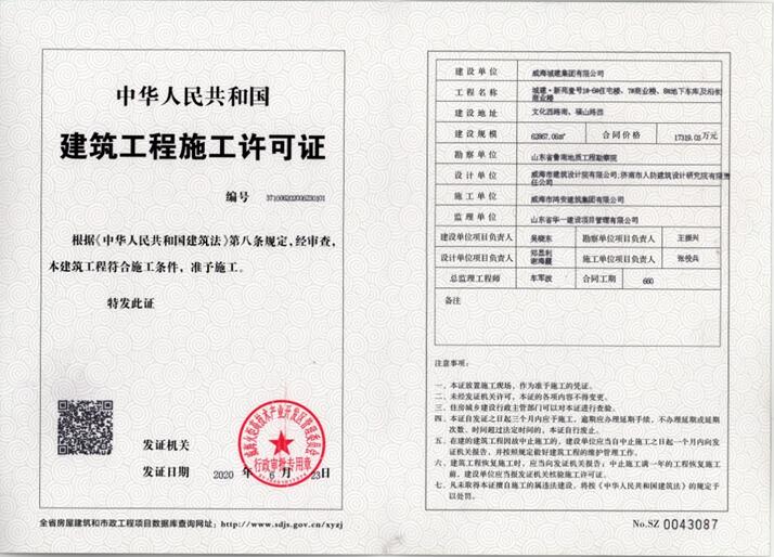 施工單位:威海市鴻安建筑集團有限公司 負責人:張役兵