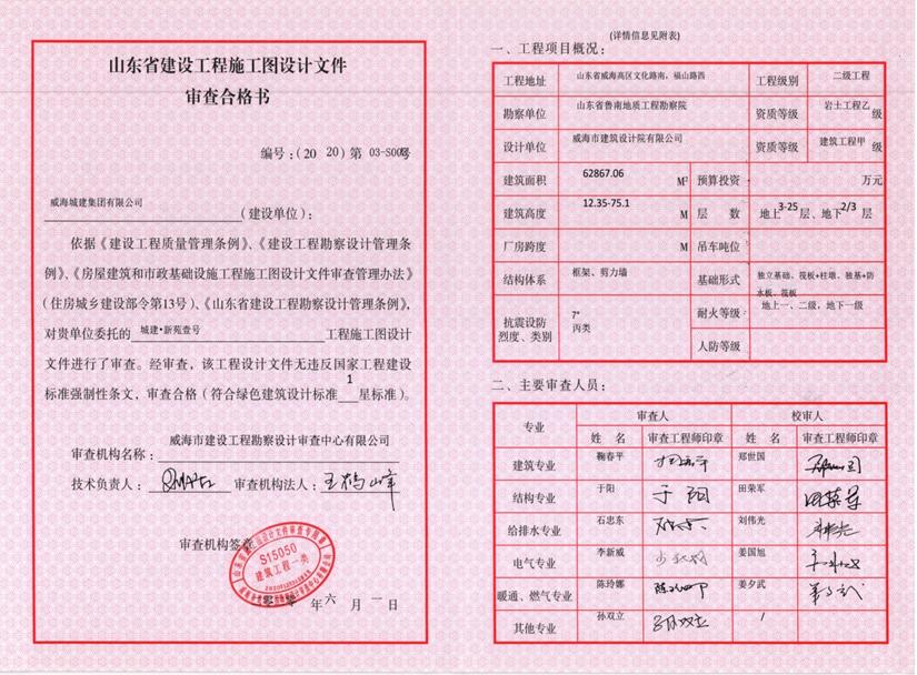 設(shè)計單位:威海市建筑設(shè)計院有限公司 負責人:鄭顯利