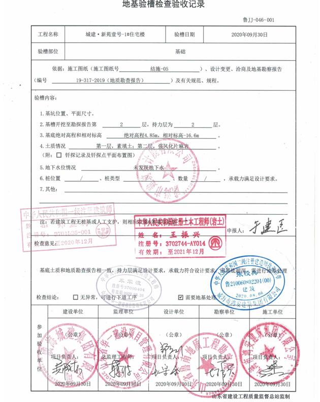 勘察單位:山東省魯南地質(zhì)工程勘察院 負責人:王振興